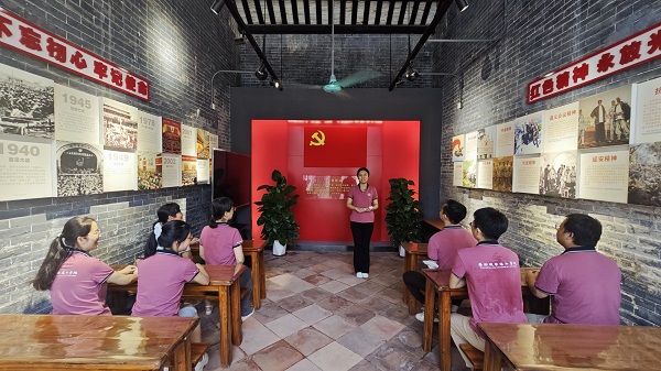 在讲解员的指引下,教工党员参观了花县农民运动展览馆。除了讲解员的生动描述,该展览馆还通过扫码语音讲解、视频观看等手段,让在场人员共同回顾了花县农民运动整个发展历程和难忘的峥嵘岁月,大家身临其境般穿越时空,回到了先辈们艰苦奋斗、甘于奉献的革命年代。