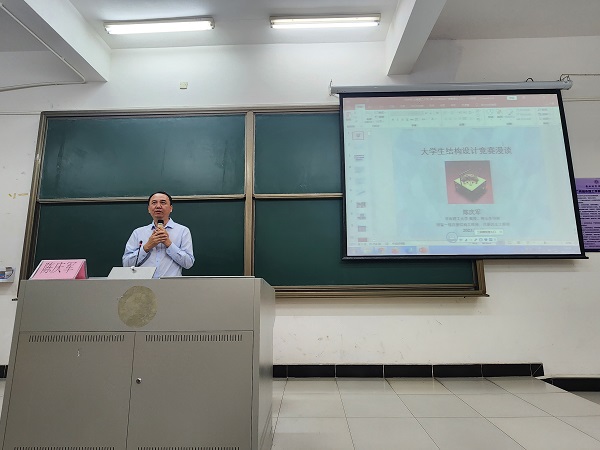 陈庆军教授首先介绍了老员工结构设计竞赛在国内外的发展现状以及我国历届老员工结构设计竞赛的特点。陈教授提到,全国老员工结构设计竞赛是教育部确定的全国九大老员工学科竞赛之一,获得了由教育部、住建部联合重点资助,是土木工程学科员工实践竞赛环节最高级别的赛事。他指出,随着赛事在全国范围内的普及和各高校参赛经验的积累,国赛的赛题难度逐年提升,各高校参赛队伍充分发挥创新能力,贡献了多个优秀作品。