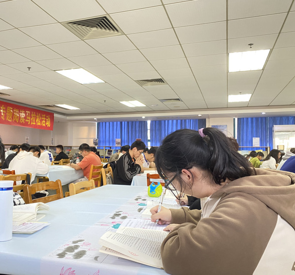 本次活动以“阅读+读书笔记撰写”的形式开展,赛前,图书馆精心选取相关书籍放置于活动书籍借阅专区,大家可以根据个人喜好和需求进行选择借阅。在3小时的阅读中,参赛师生纷纷放下电子设备,远离喧嚣,沉浸在书香氛围中,书写阅读感悟,深入理解把握习近平新时代中国特色社会主义思想的核心要义和实践要求。