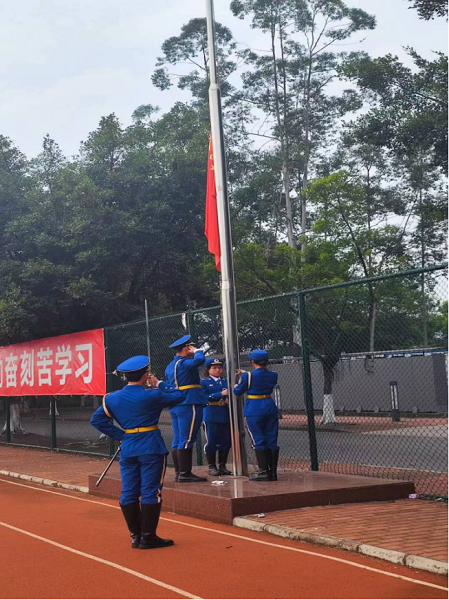 上午7点45分,升旗仪式正式开始。随着国旗护卫队的队列出现,现场氛围庄重而肃穆。在全体师生的注目礼下,国旗护卫队队员们护送鲜艳的五星红旗有序进场,队员们一个个昂首挺胸,一步步走向升旗台。伴随者庄严的《义勇军进行曲》,全体师生目光聚焦在五星红旗,齐唱国歌,由衷地表达对祖国无限的热爱和崇高的敬意。
