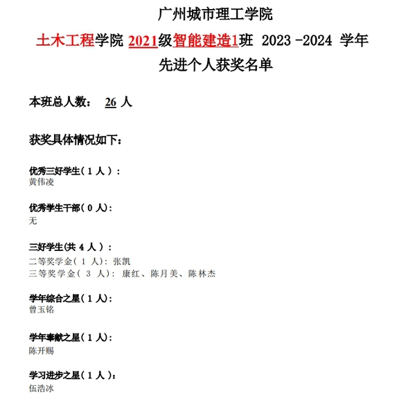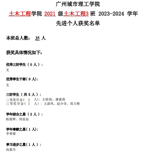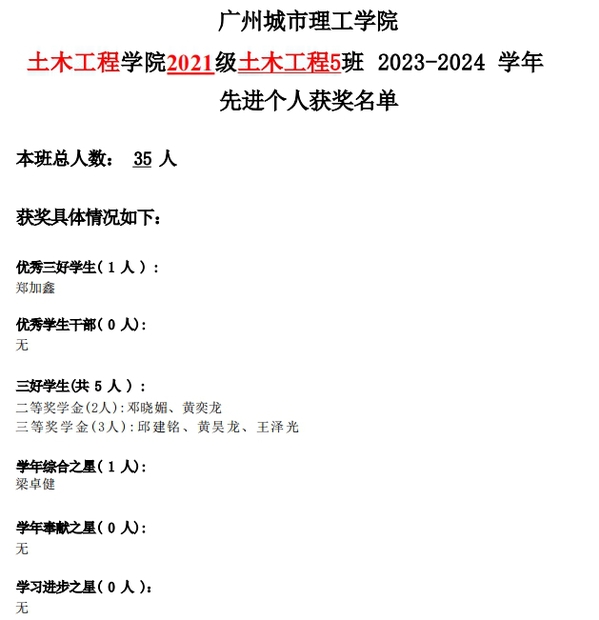 2023-2024学年2021级综合测评获奖员工名单公示