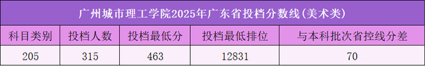 (5)“美术类”205组投档315人,最低投档分为463分,高出省控线70分;投档最低排位12831,最低排位与上一年持平,热门专业为视觉传达设计。